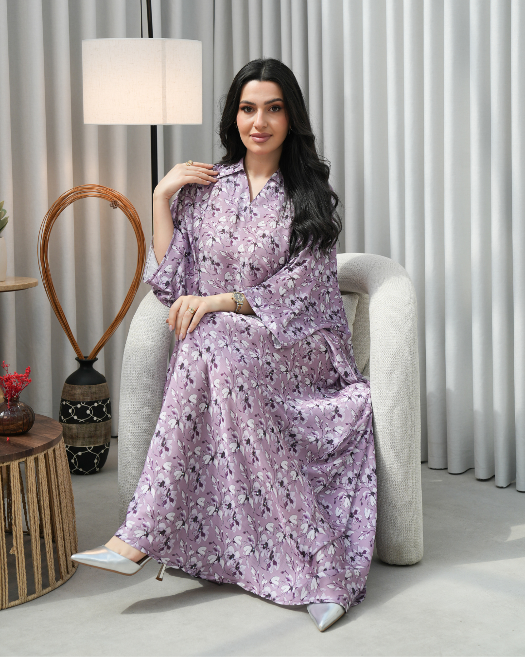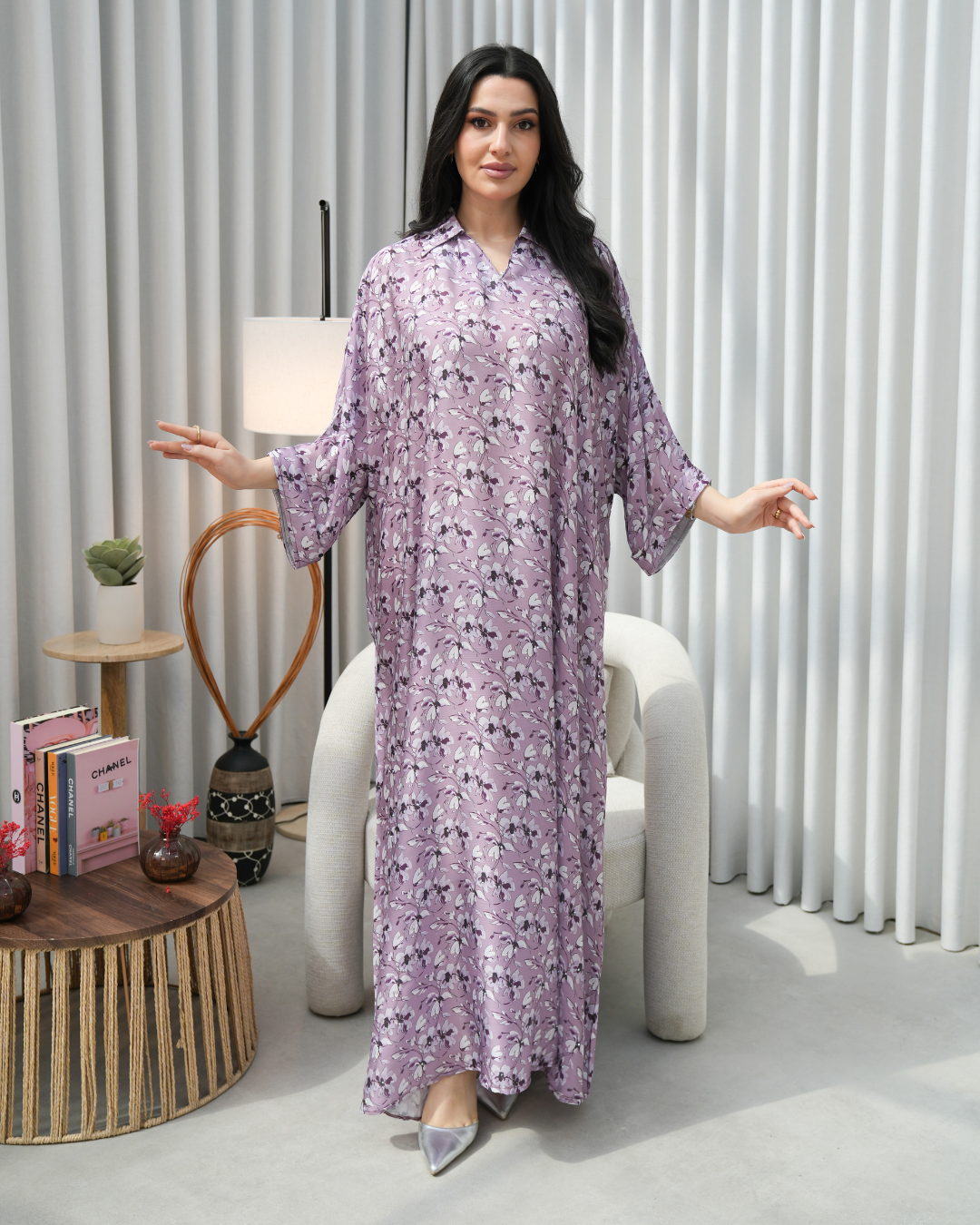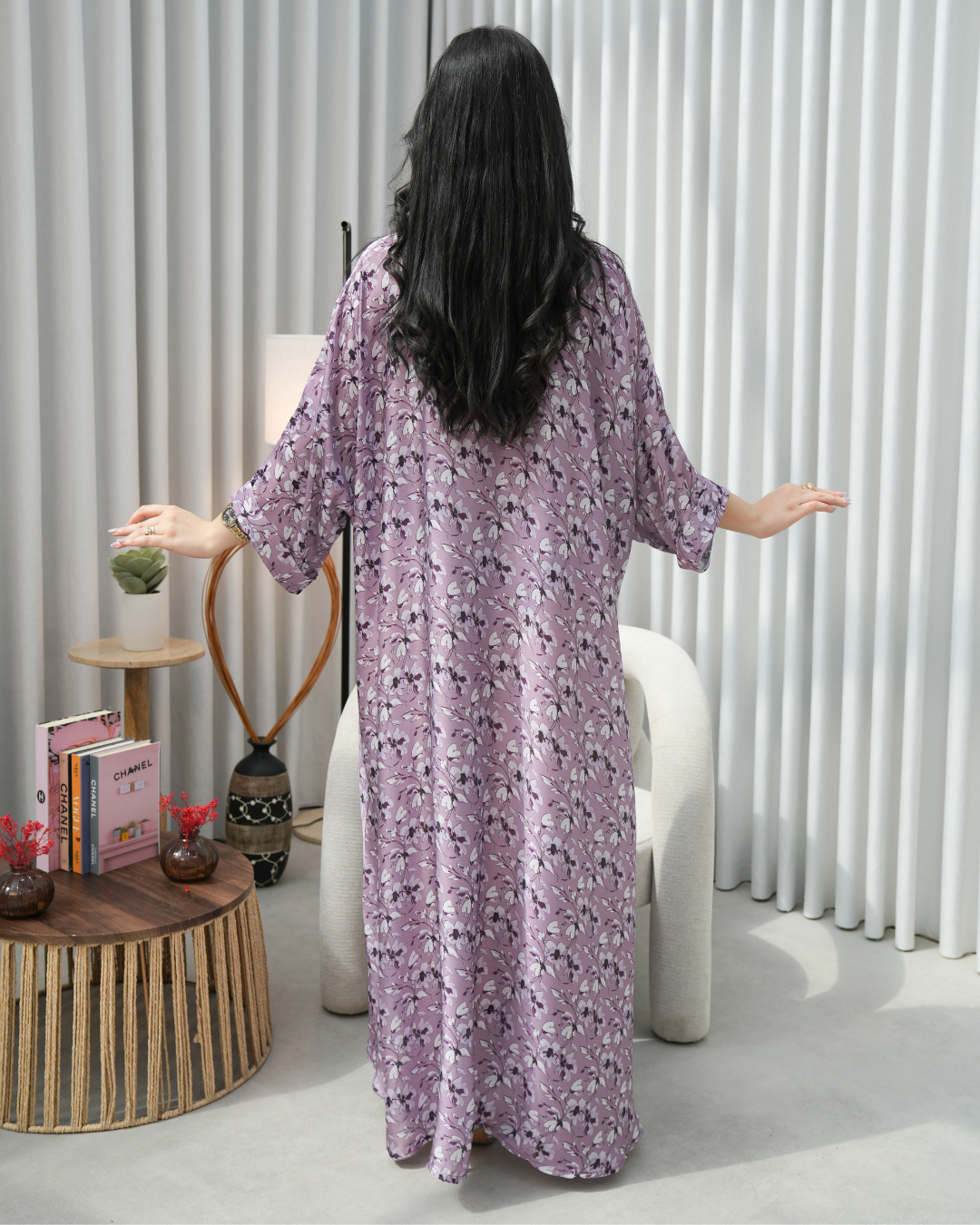 جلابية بتصميم راقٍ وقصّة محتشمة تناسب جميع الأوقات. خامة مريحة وجودة عالية تعطيك إطلالة أنيقة بدون تكلف، مثالية للاستخدام اليومي واللمّات العائلية
