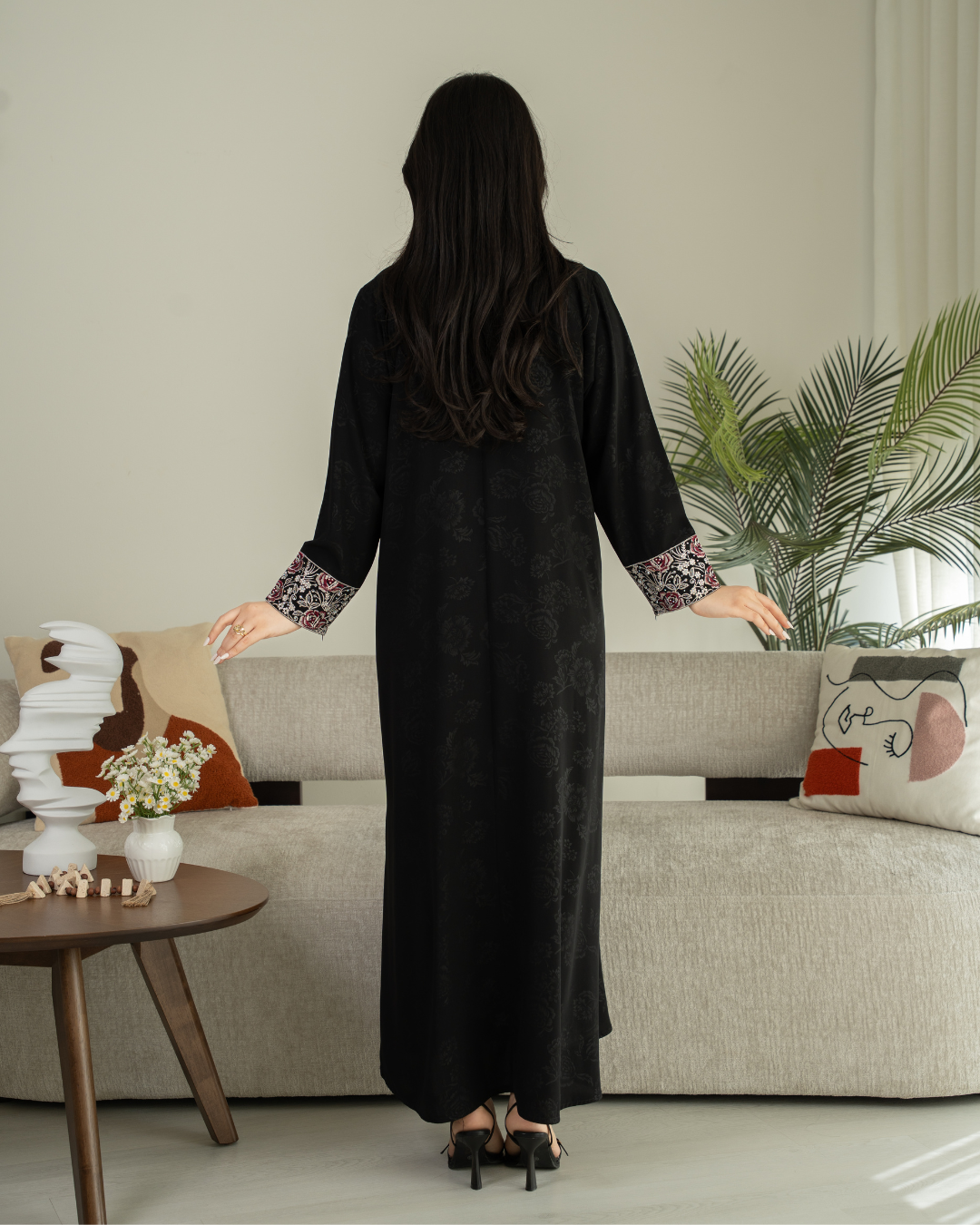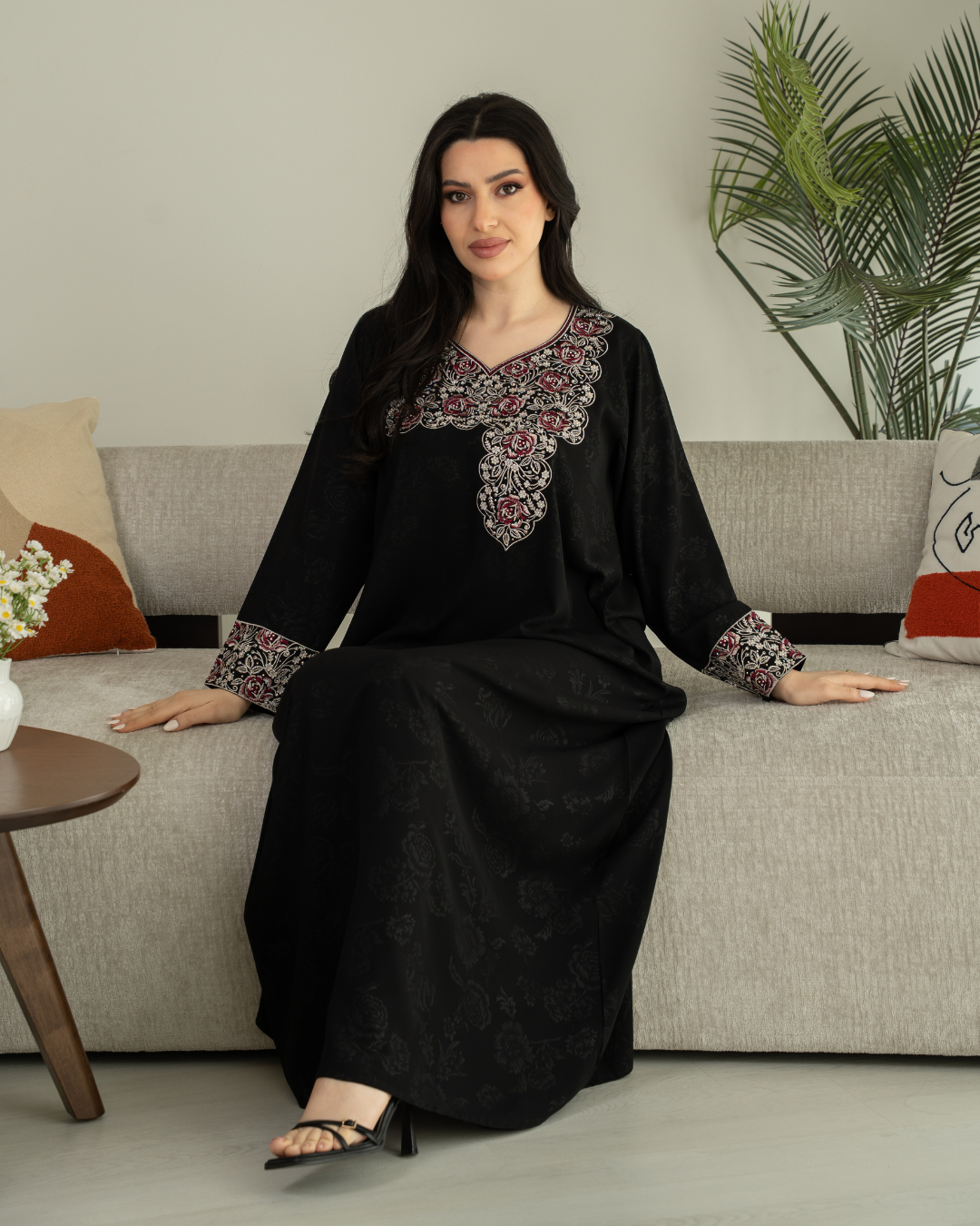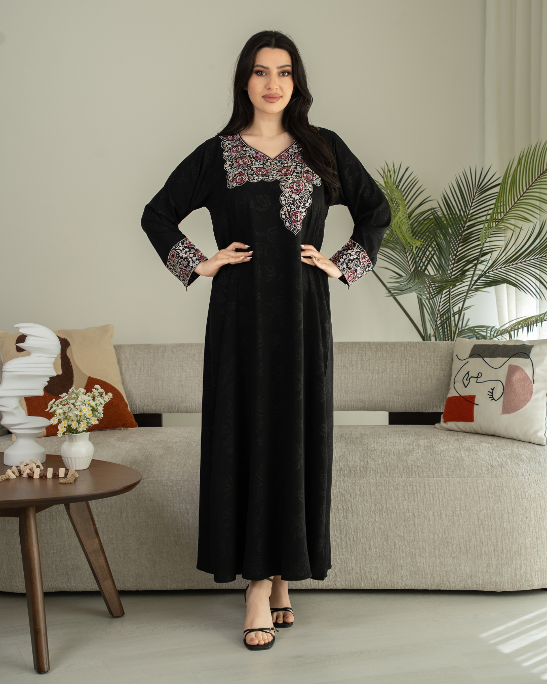 جلابية بتصميم راقٍ وقصّة محتشمة تناسب جميع الأوقات. خامة مريحة وجودة عالية تعطيك إطلالة أنيقة بدون تكلف، مثالية للاستخدام اليومي واللمّات العائلية