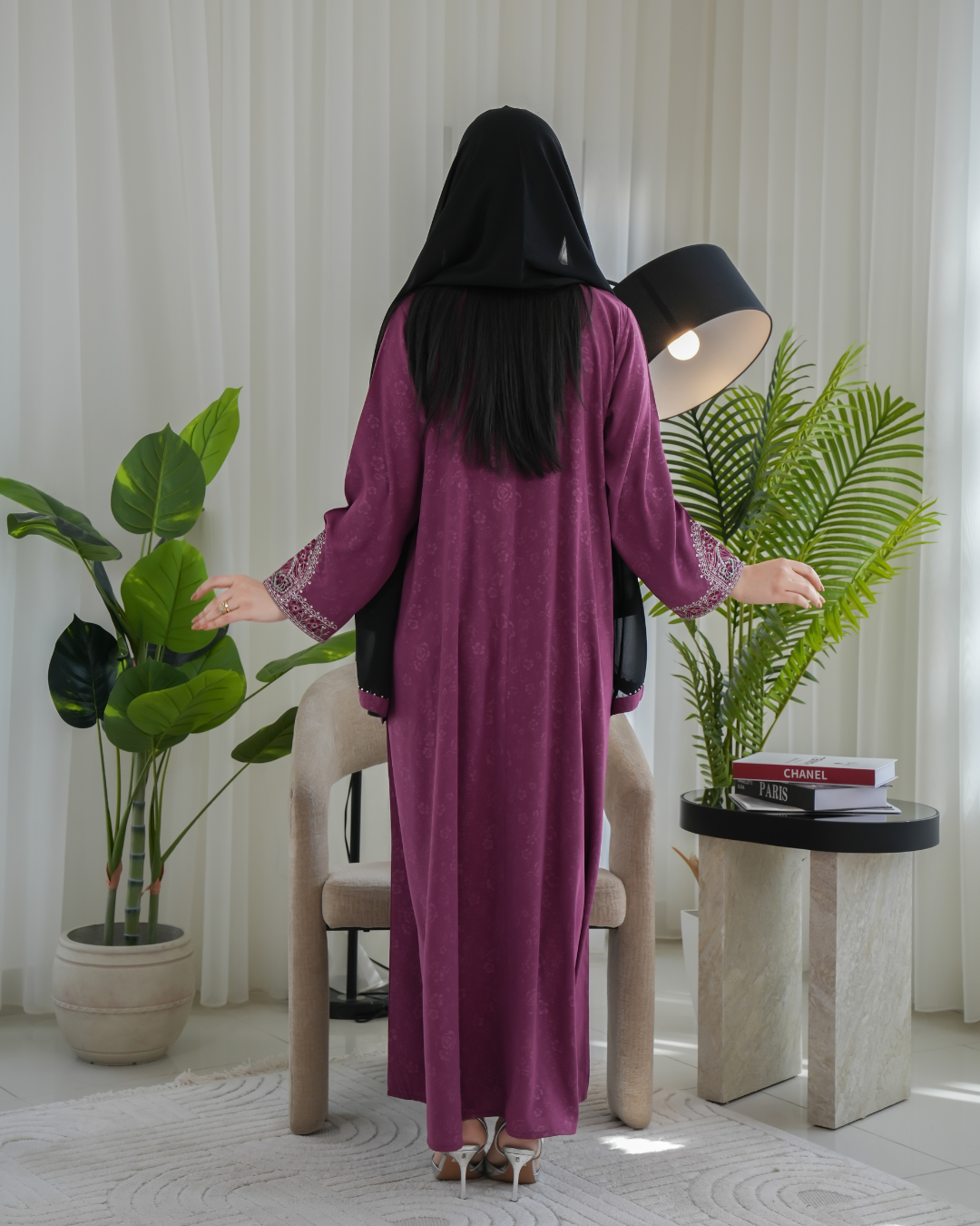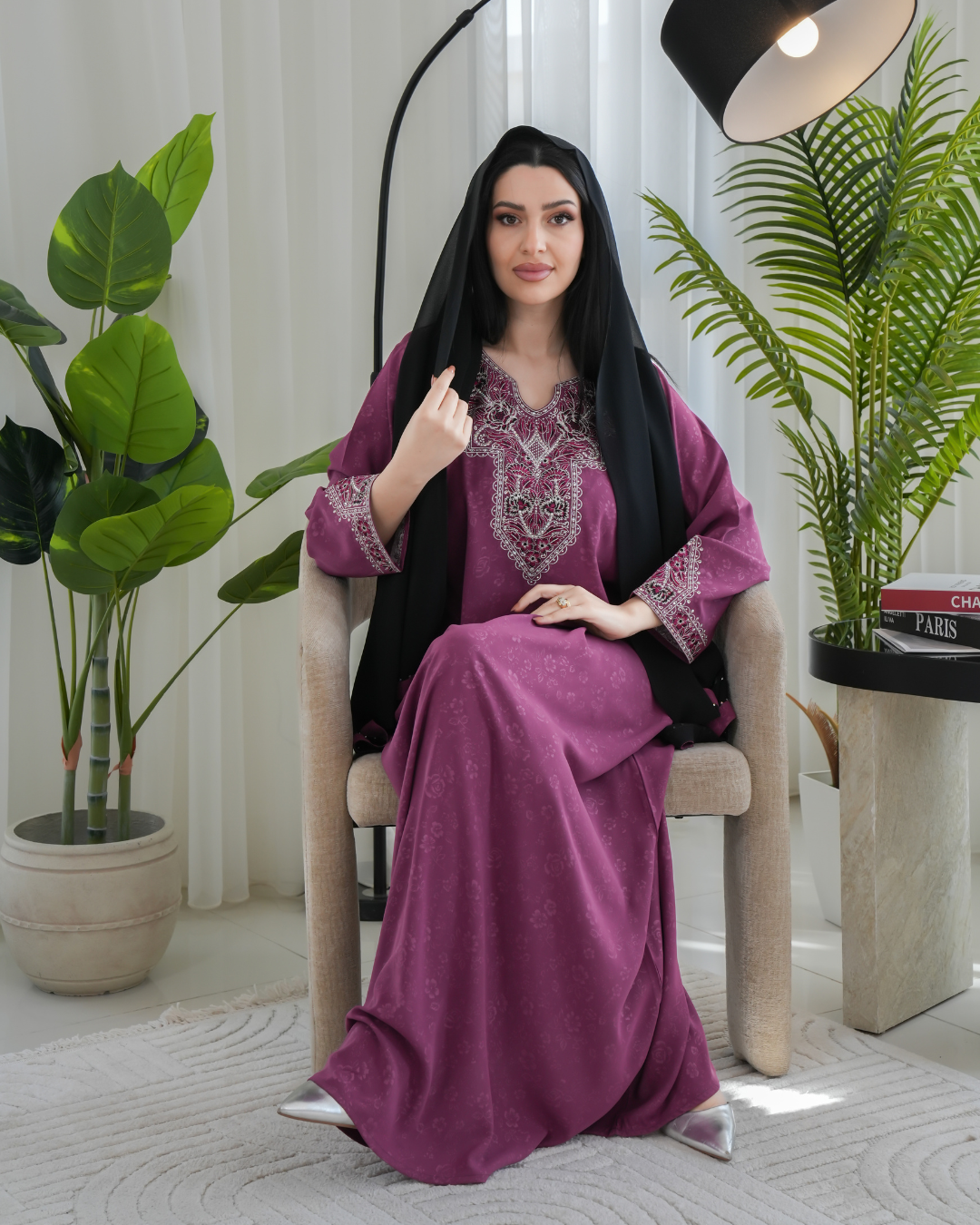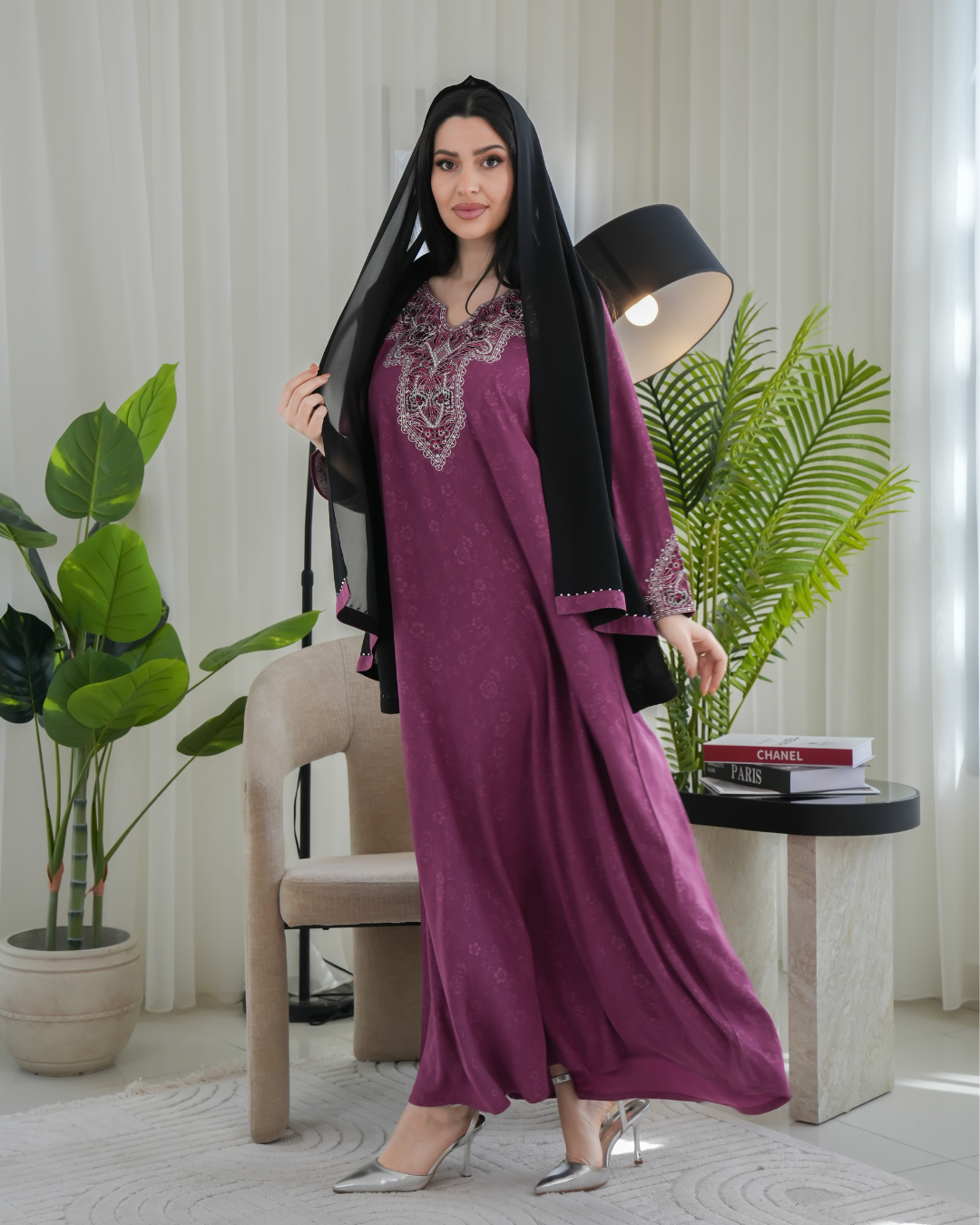 جلابية بتصميم راقٍ وقصّة محتشمة تناسب جميع الأوقات. خامة مريحة وجودة عالية تعطيك إطلالة أنيقة بدون تكلف، مثالية للاستخدام اليومي واللمّات العائلية