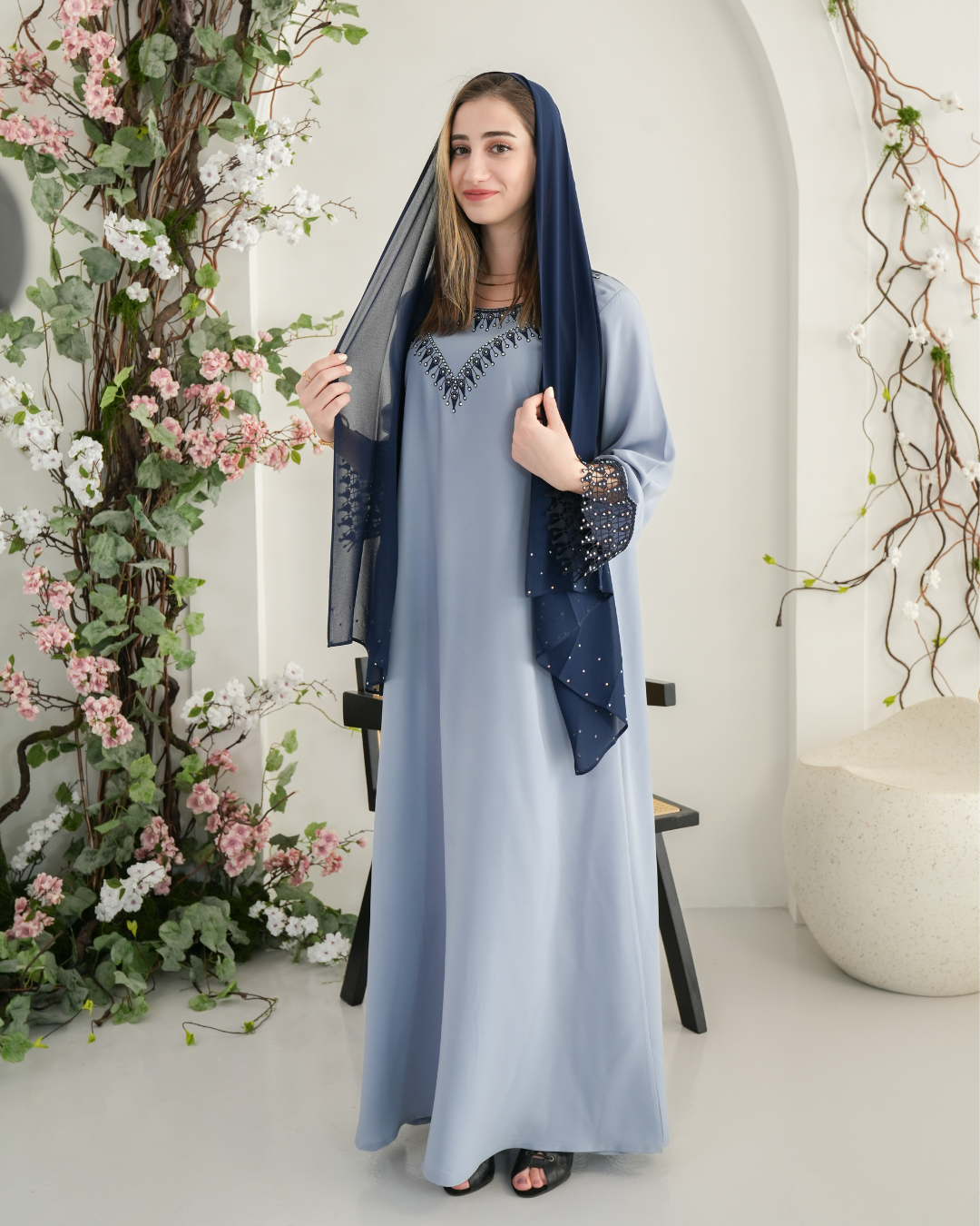 جلابية بتصميم راقٍ وقصّة محتشمة تناسب جميع الأوقات. خامة مريحة وجودة عالية تعطيك إطلالة أنيقة بدون تكلف، مثالية للاستخدام اليومي واللمّات العائلية