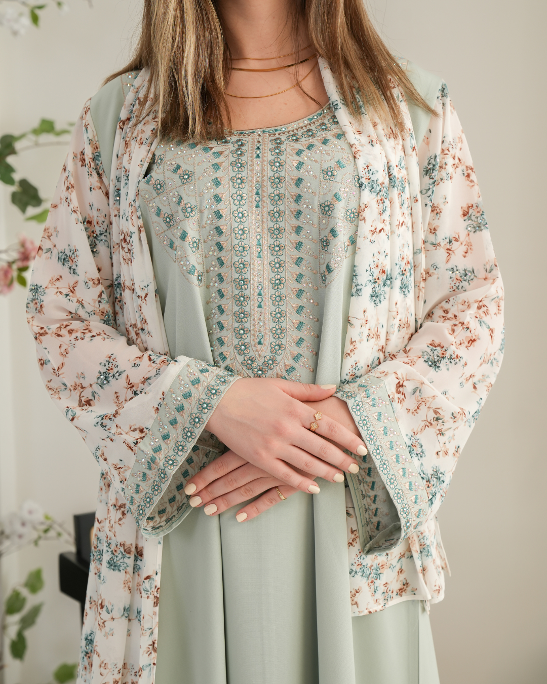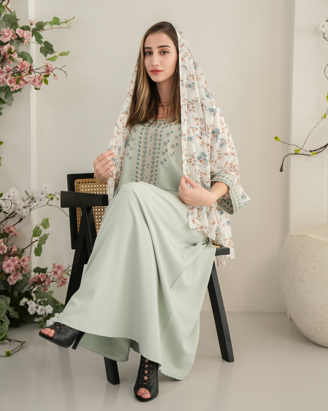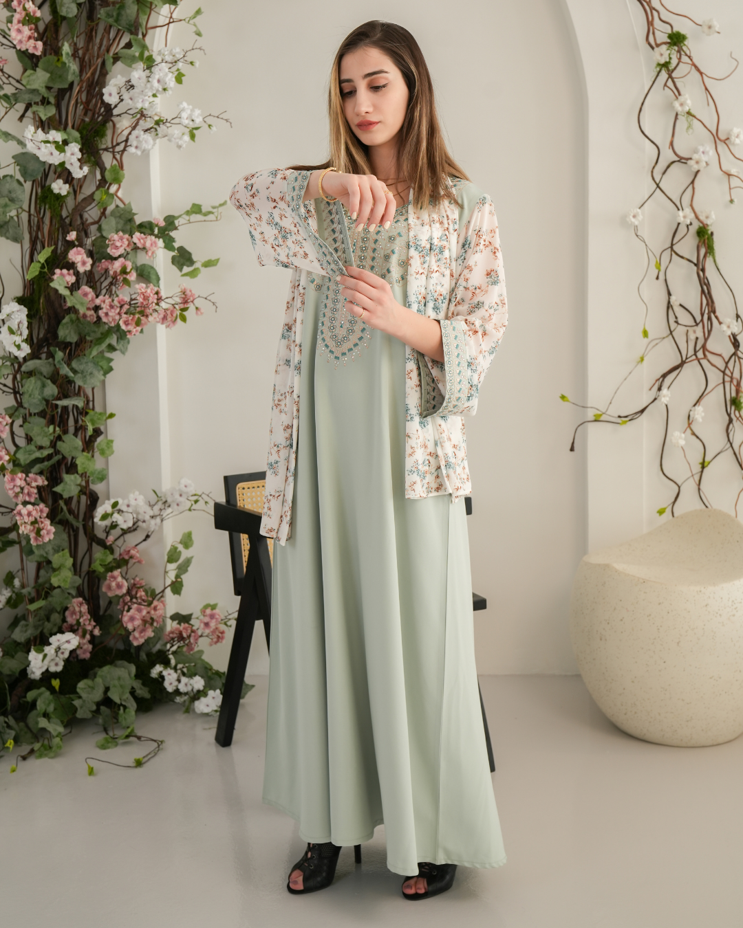 جلابية بتصميم راقٍ وقصّة محتشمة تناسب جميع الأوقات. خامة مريحة وجودة عالية تعطيك إطلالة أنيقة بدون تكلف، مثالية للاستخدام اليومي واللمّات العائلية