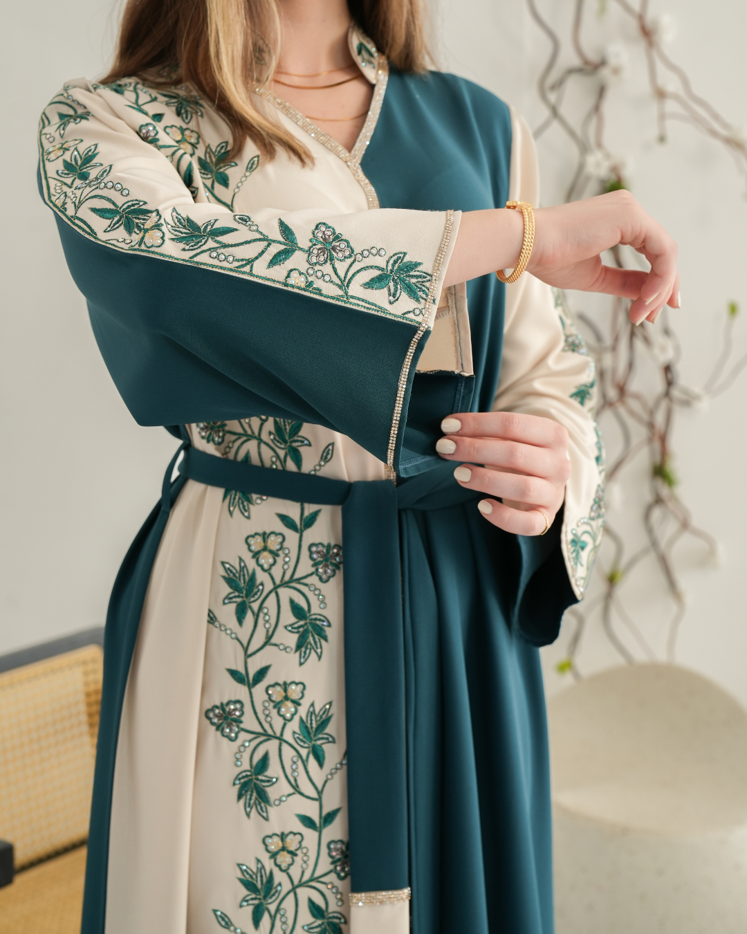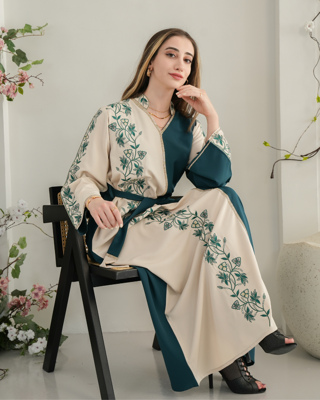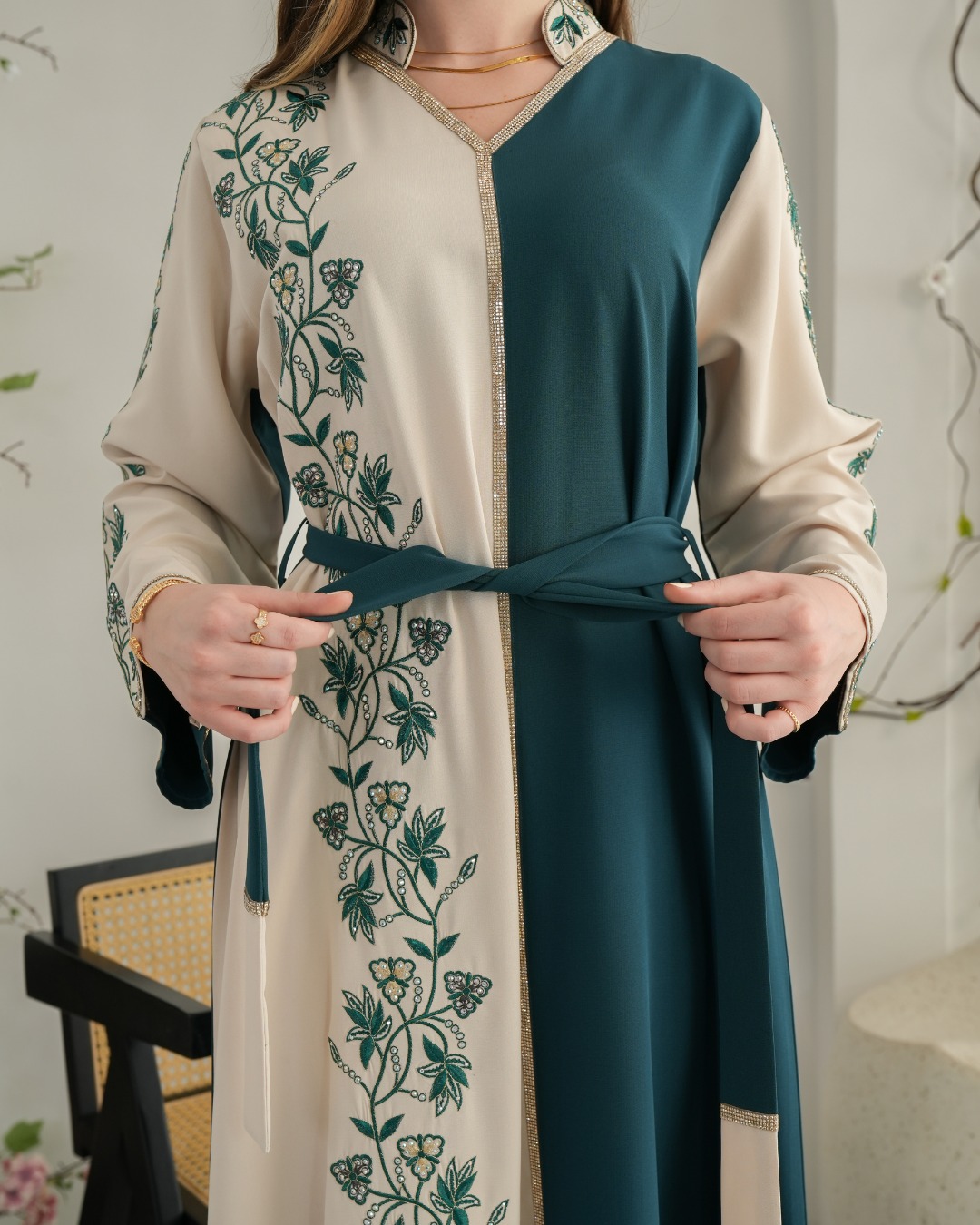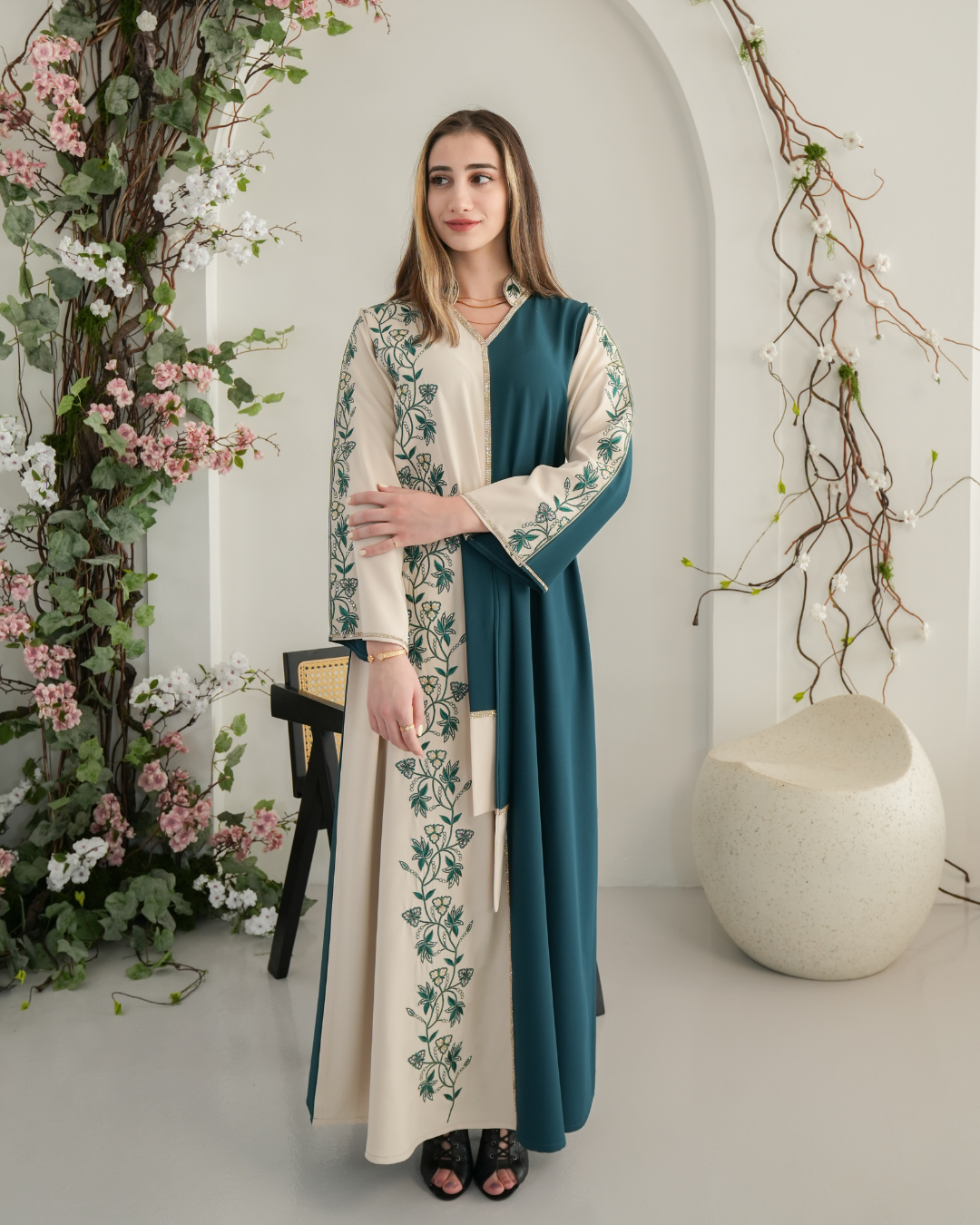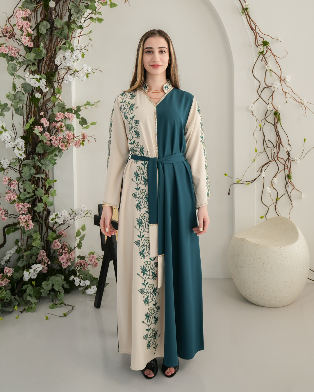 جلابية بتصميم راقٍ وقصّة محتشمة تناسب جميع الأوقات. خامة مريحة وجودة عالية تعطيك إطلالة أنيقة بدون تكلف، مثالية للاستخدام اليومي واللمّات العائلية