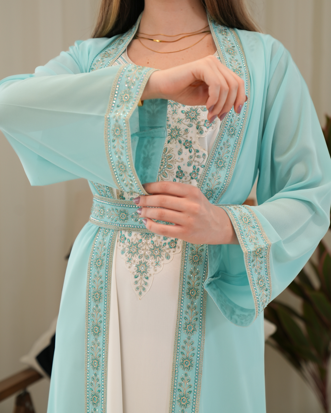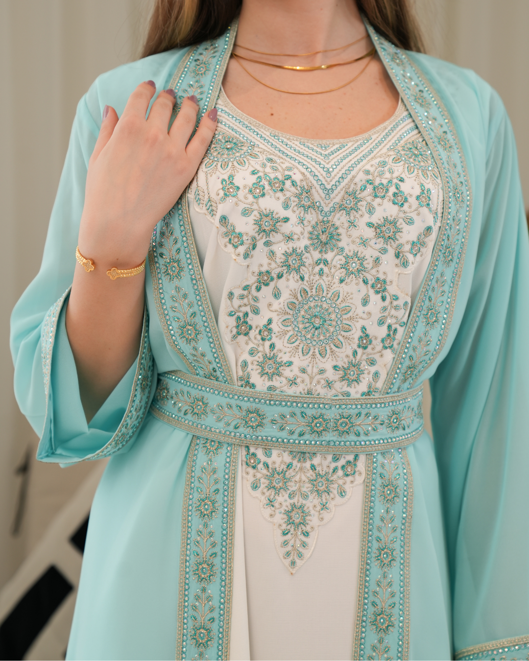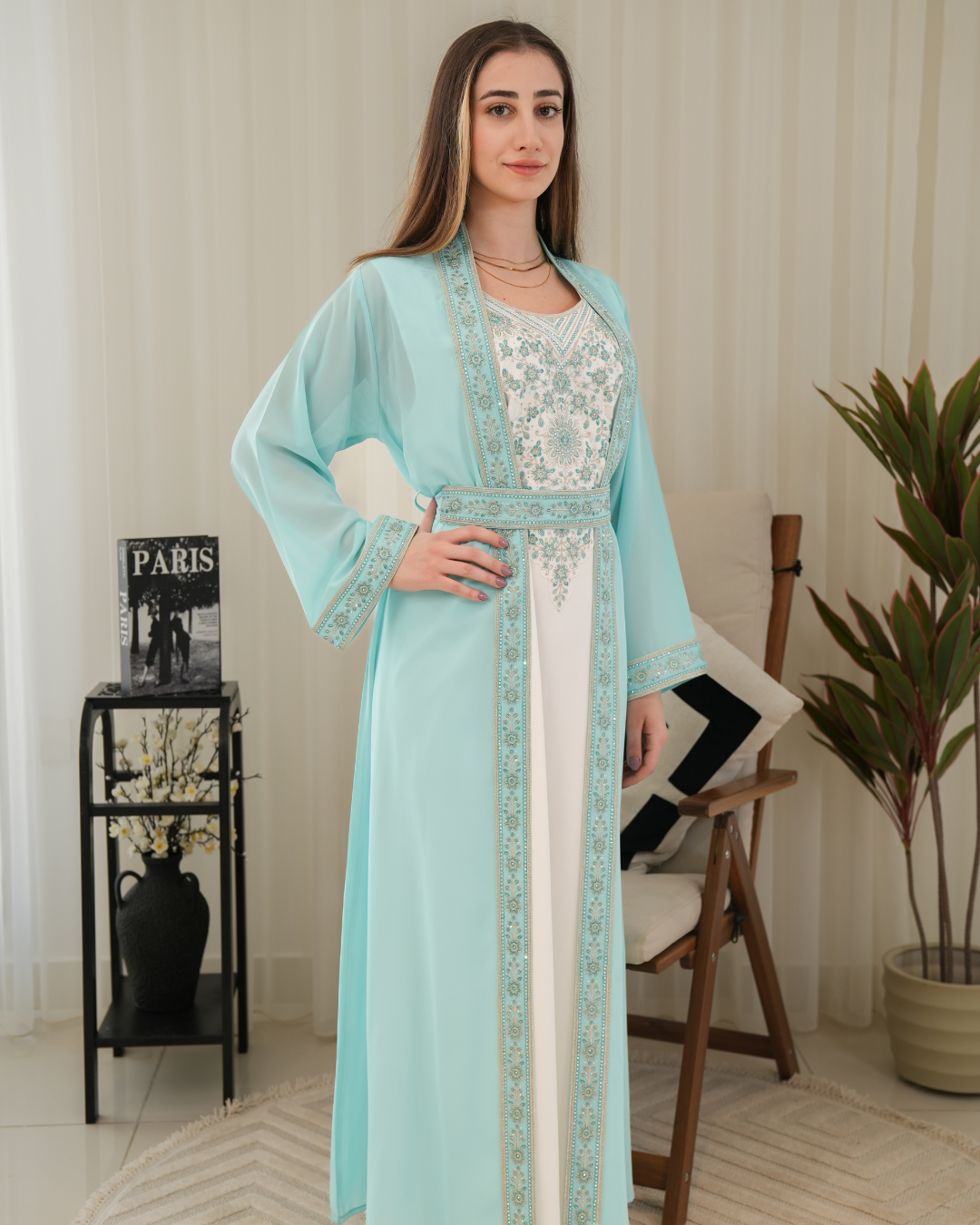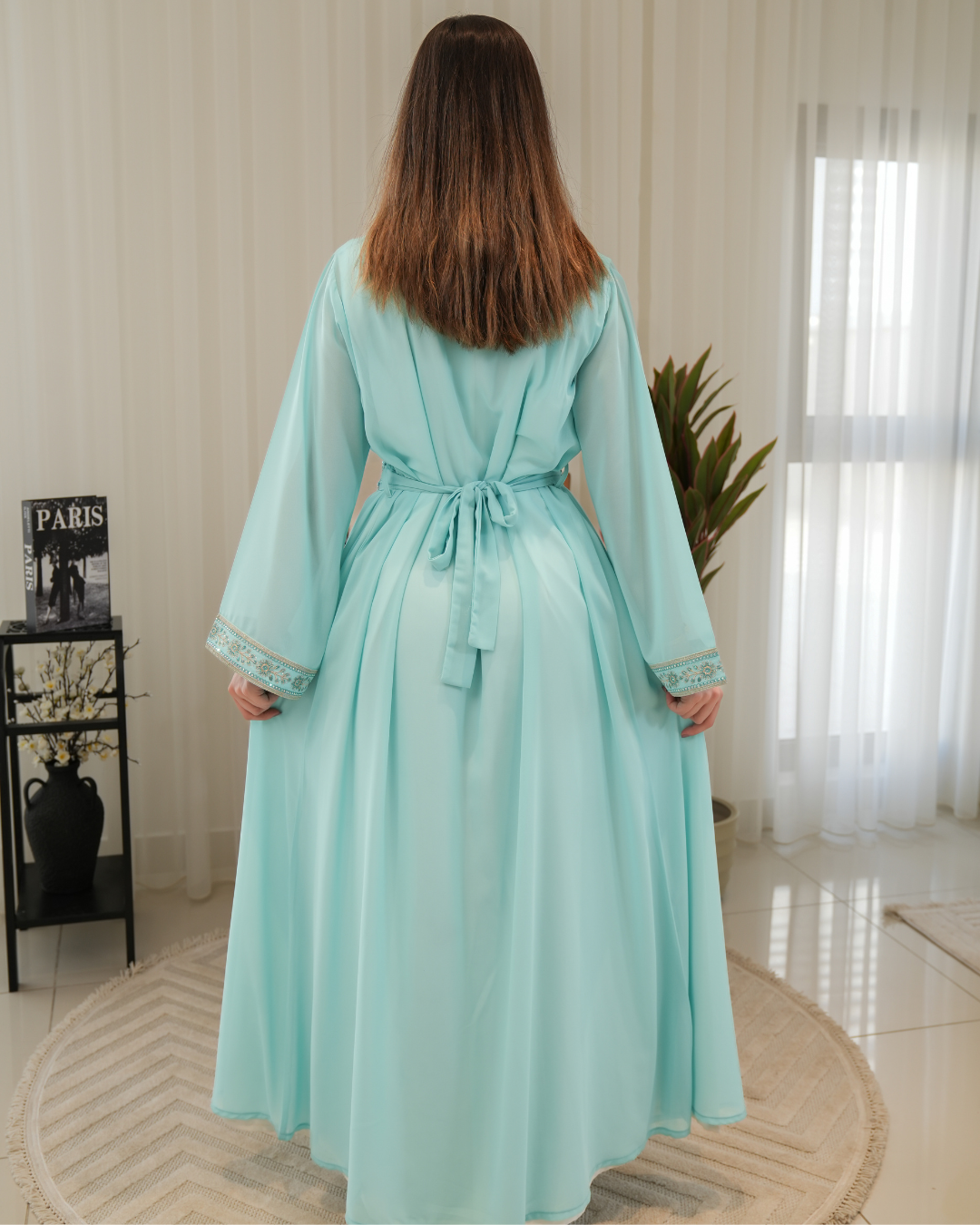 جلابية بتصميم راقٍ وقصّة محتشمة تناسب جميع الأوقات. خامة مريحة وجودة عالية تعطيك إطلالة أنيقة بدون تكلف، مثالية للاستخدام اليومي واللمّات العائلية